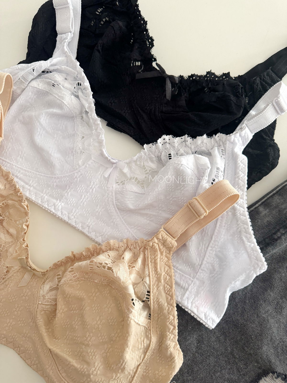 Este modelo es el favorito para las etapas donde la piel está más sensible. Combina la frescura del algodón con la belleza de una puntilla geométrica que no pica.
