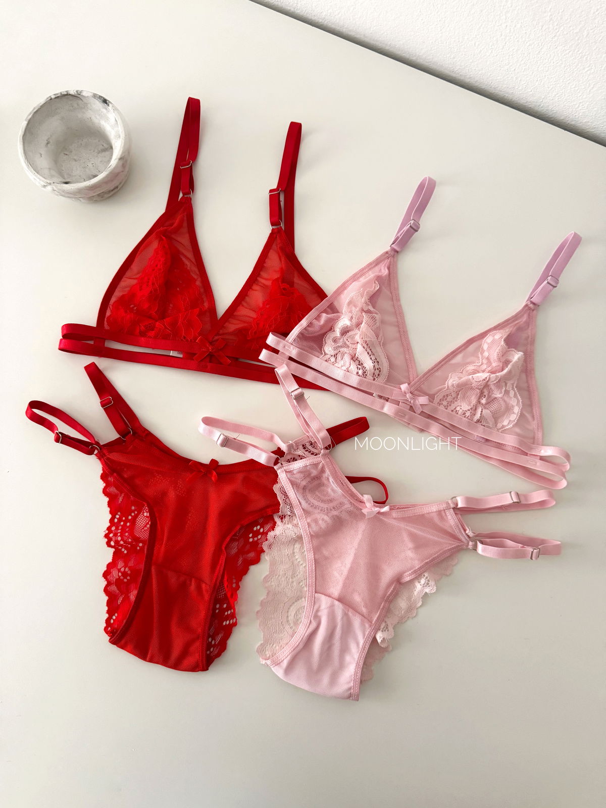 El Conjunto Valentina es esa pieza de lencería que te hace sentir sofisticada sin perder la libertad de movimiento. Está diseñado para quienes aman los detalles delicados y la sensualidad del encaje.
