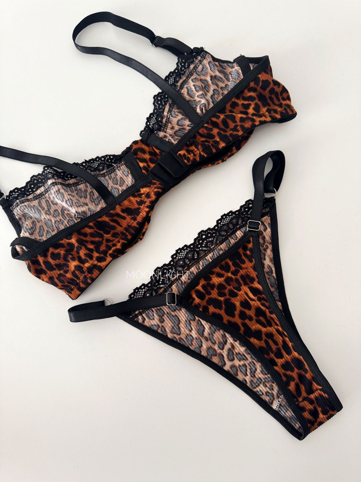 Tu nuevo conjunto favorito para esos días donde querés sentirte imparable. Este set combina un estampado animal print clásico con terminaciones de puntilla suave que no pican ni irritan.