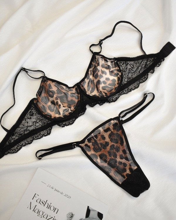 • Microtul estampado animal print + detalle de encaje en base