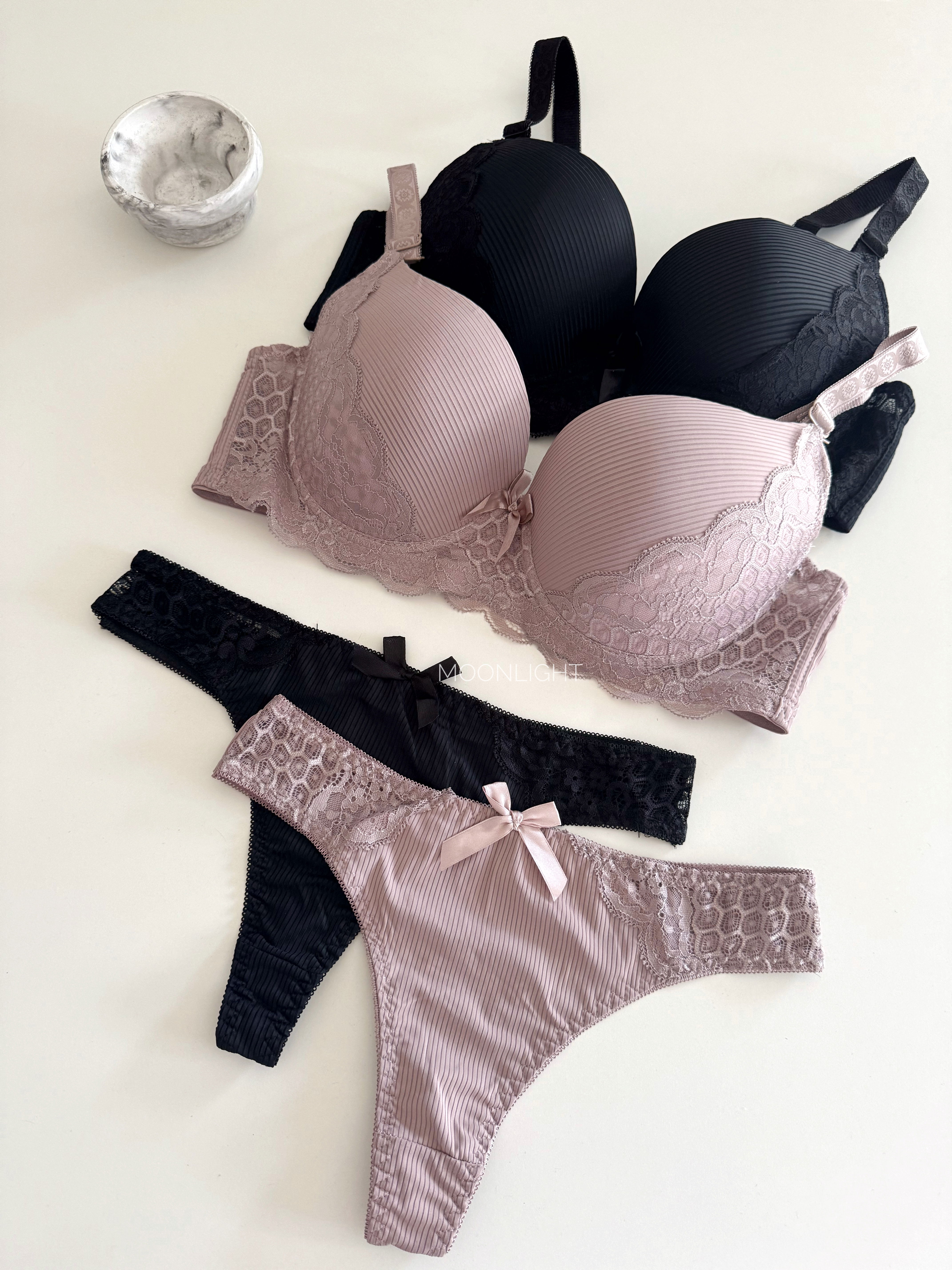Set de corpiño armado con aro y bombacha colaless a juego, pensado para realzar y acompañar las curvas con total comodidad.