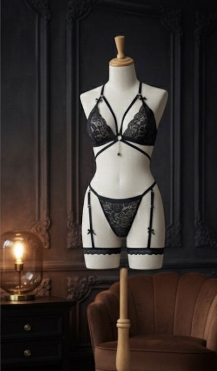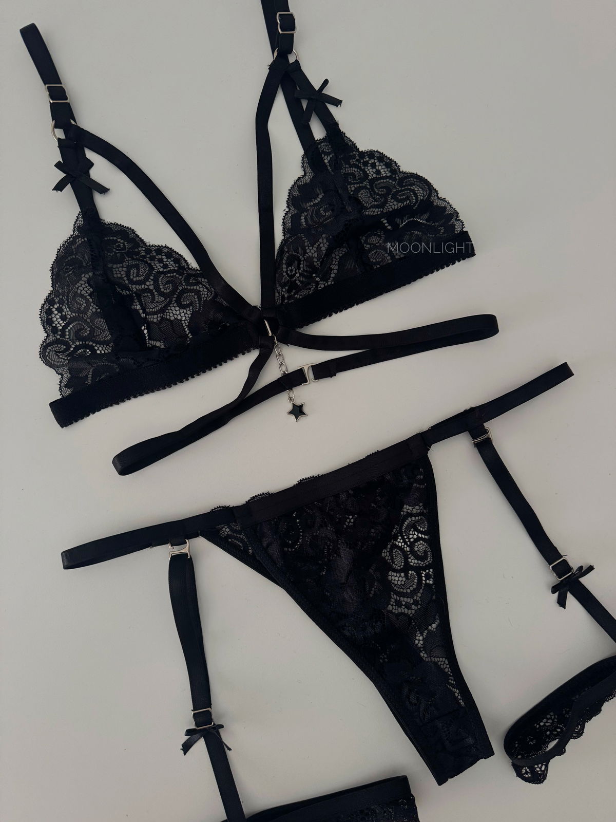 ✨ Conjunto de encaje con tiras regulables y detalles únicos que elevan el clásico estilo Moonlight.