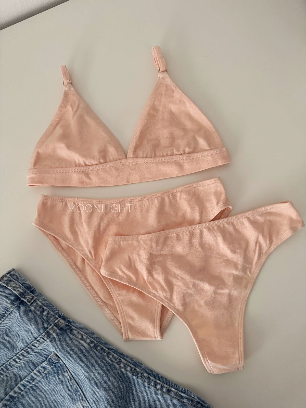 Conjunto básico de algodón, ideal para quienes priorizan la comodidad todos los días. Corpiño sin aro, liviano y suave al contacto con la piel, combinado 2 con bombacha clásicas: vedetina y colaless elastizadas. Perfecto para uso diario o descanso.